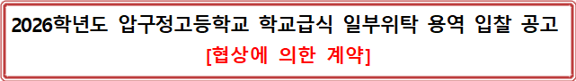 가. 용역명: 2026학년도 압구정고등학교 학교급식 일부위탁 용역