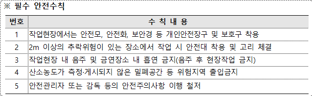1. 나는 산업안전보건법 및 중대재해처벌법을 준수한다.