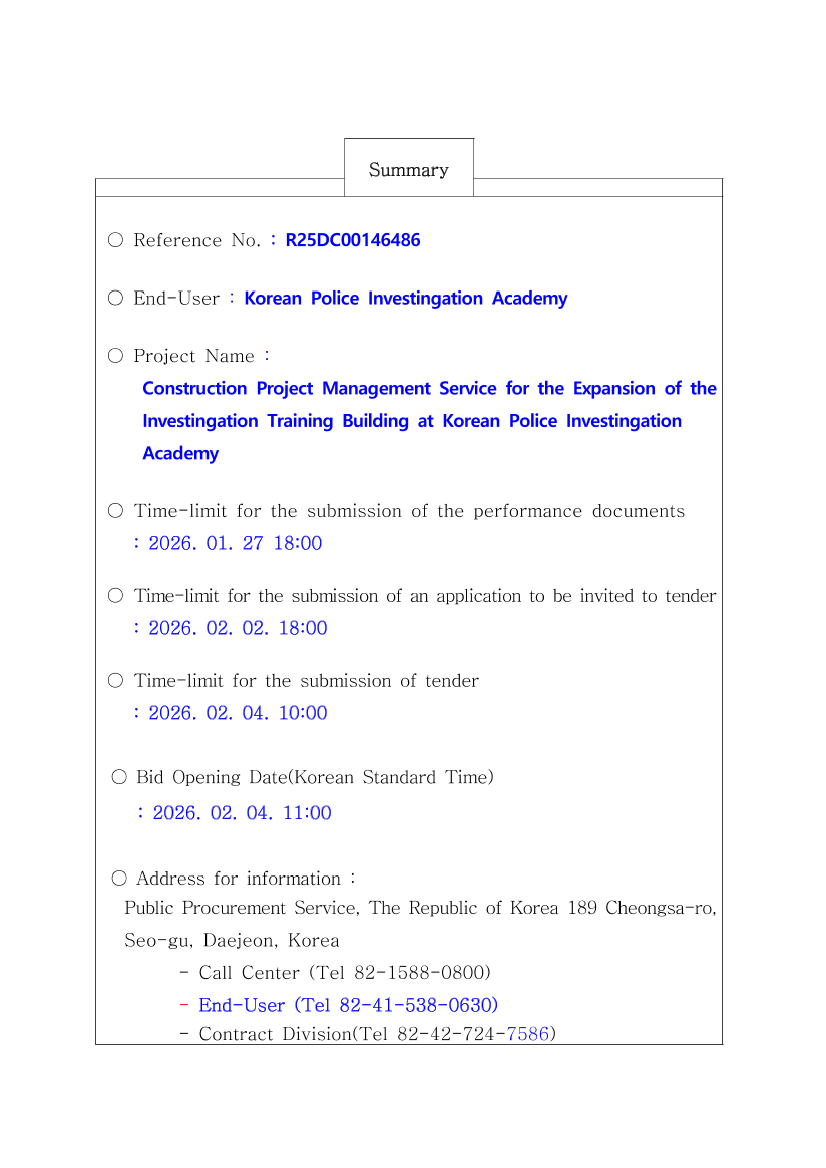 경찰수사연수원 수사교육동 증축사업 건설사업관리용역(감독권한대행) |