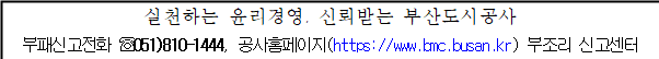 ○부조리신고센터(익명․실명 신고가능) : 부산도시공사 홈페이지(https://www.bmc.busan.kr)