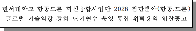 가. 입찰건명: 한서대학교 항공드론혁신융합사업단 2026 첨단분야(항공.드론) 글로벌 기술역량 강화 단기연수 운영 통합 위탁용역