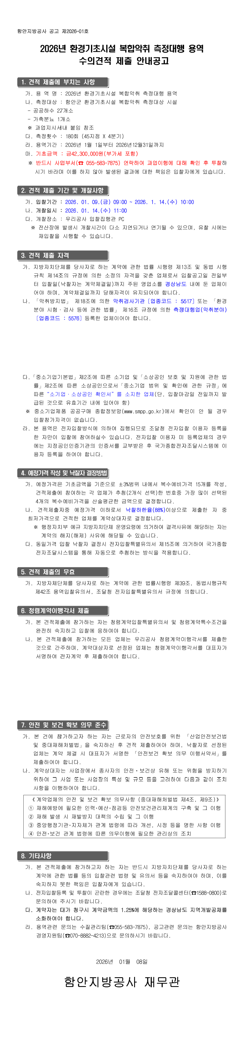 2026년 환경기초시설 복합악취 측정대행 용역 |