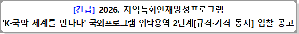 [긴급] 2026. 지역특화인재양성 'K-국악 세계를 만나다' 국외프로그램 위탁용역