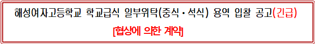 가. 건명 : 해성여자고등학교 학교급식 일부위탁(중식ㆍ석식)용역 입찰 공고