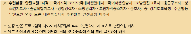 상황이 발생될 경우 수련활동이 취소될 수 있음.