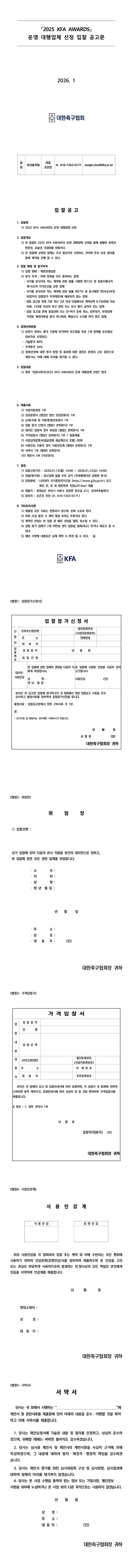 2025 KFA AWARDS 운영 대행업체 선정 입찰 공고 |