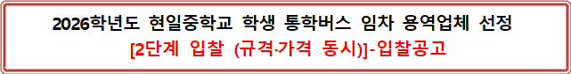 2026학년도 현일중학교 학생 통학버스 임차 용역 2단계(규격,가격 동시)