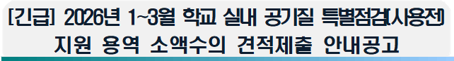 [긴급] 2026년 학교 실내 공기질 특별점검(사용전, 모듈러3단계) 지원 용역 소액수의 견적제출 안내공고