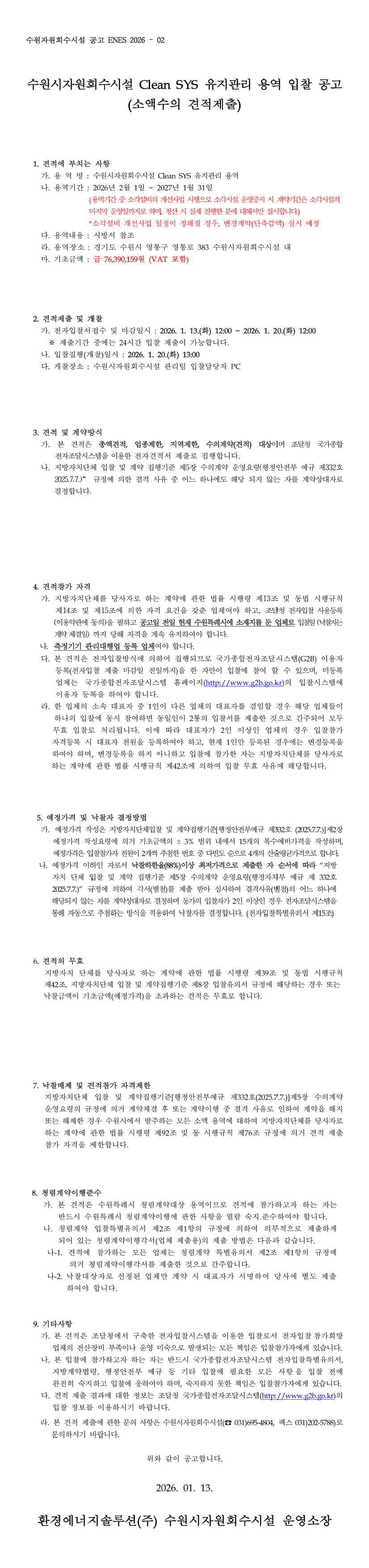 수원시자원회수시설 CleanSYS 유지관리 용역 |