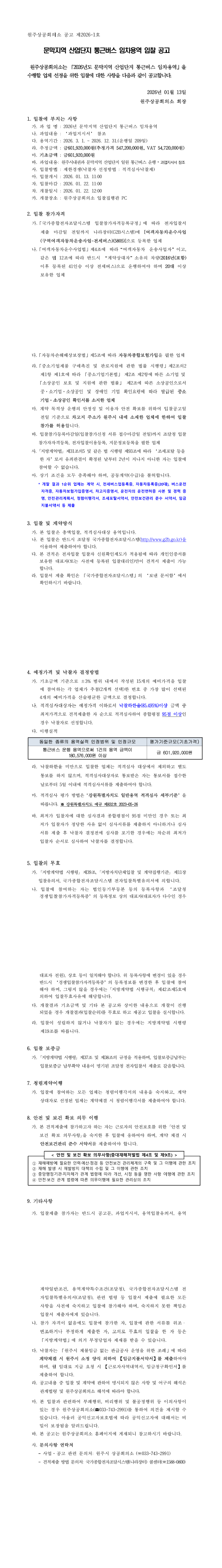 2026년도 문막지역 산업단지 통근버스 임차용역 |