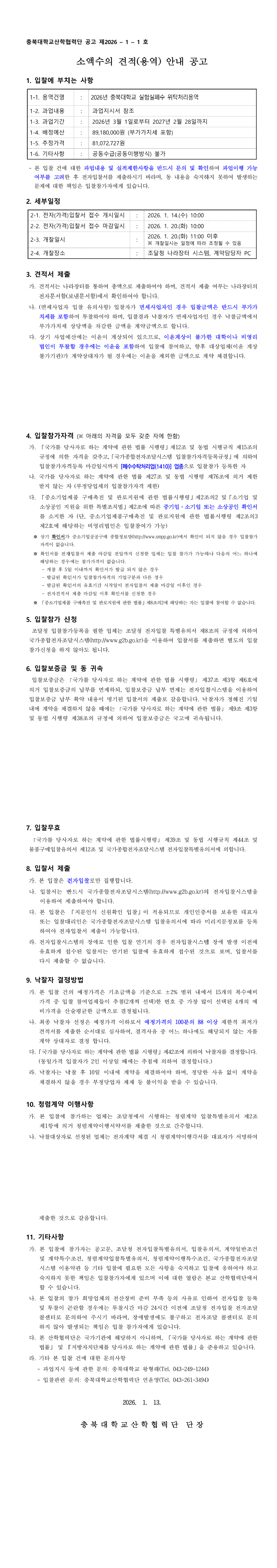 (재공고) 2026년 충북대학교 실험실폐수 위탁처리용역 |