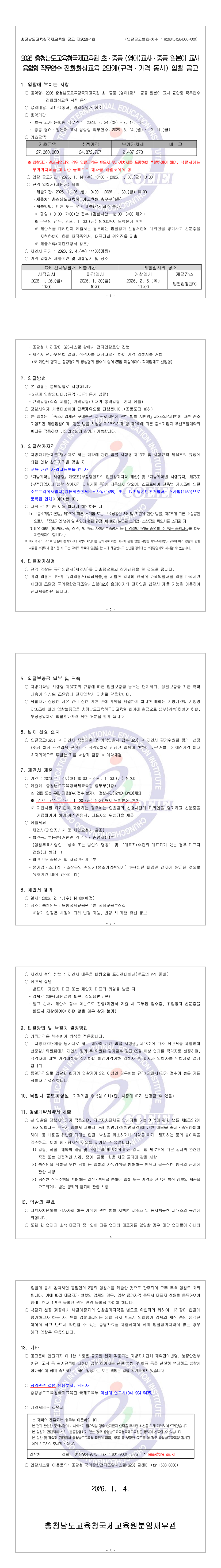 2026 충청남도교육청국제교육원 초.중등(영어)교사. 중등 일본어 교사 융합형 직무연수 전화화상교육 위탁용역 2단계(규격.가격 동시) 입찰 공고 |