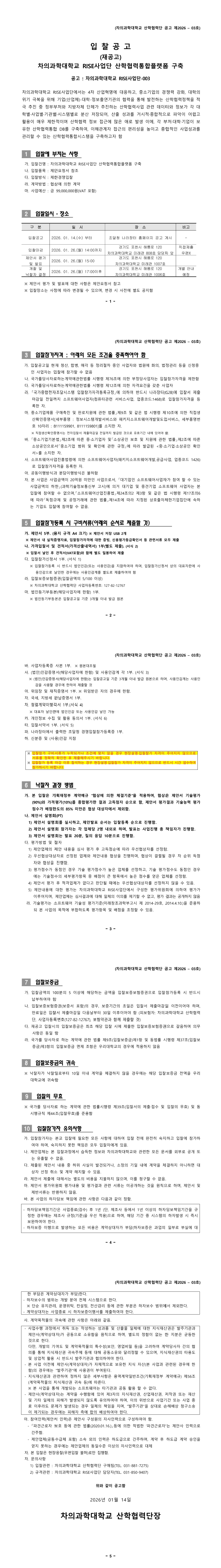 (재공고)차의과학대학교 RISE사업단 산학협력통합플랫폼 구축 |
