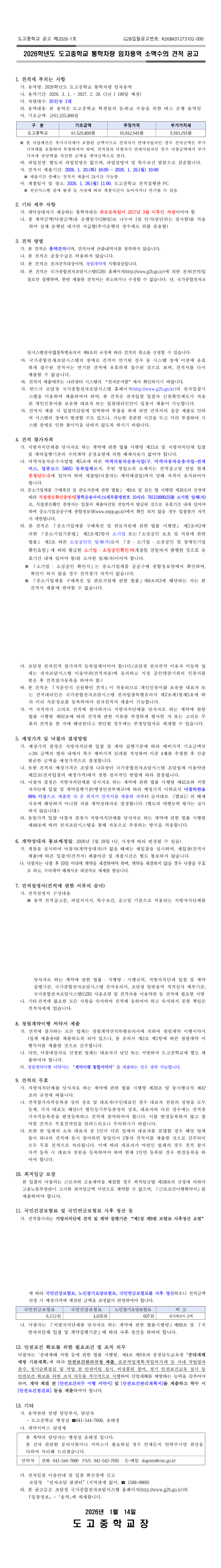 2026학년도 도고중학교 통학차량 임차용역 소액수의 견적제출 공고 |