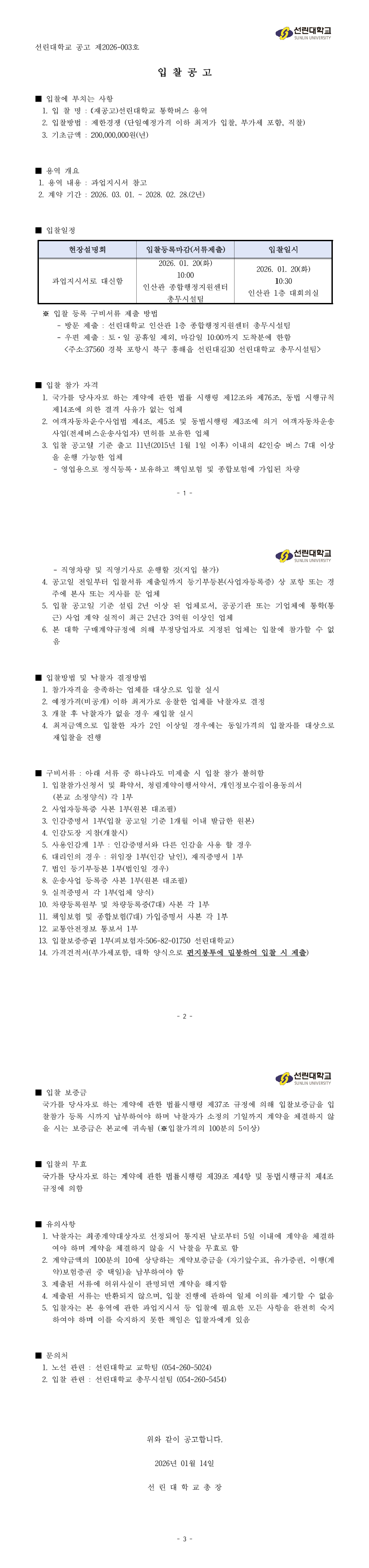 선린대학교 통학버스 용역 |