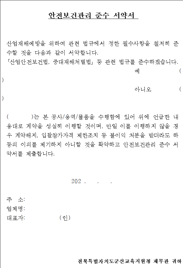 당사는 전라북도군산교육지원청과 계약 체결한 용역을 시행함에 있어 다음 사항을 준수할 것을 서약합니다.