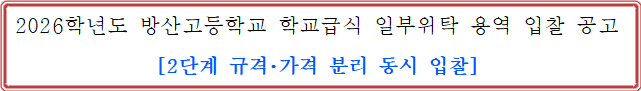 가. 용 역 명: 2026학년도 방산고등학교 학교급식 일부위탁 용역