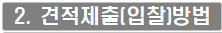 · 전자입찰의 견적서 제출은 조달청전자입찰 홈페이지의 전자입찰시스템을 이용하여야 하며 견적서 제출의 확인은 전자입찰시스템 보낸 문서함을 이용하시기 바랍니다.