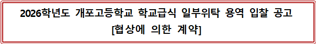 가. 용역명: 2026학년도 개포고등학교 학교급식 일부위탁 용역업체 선정