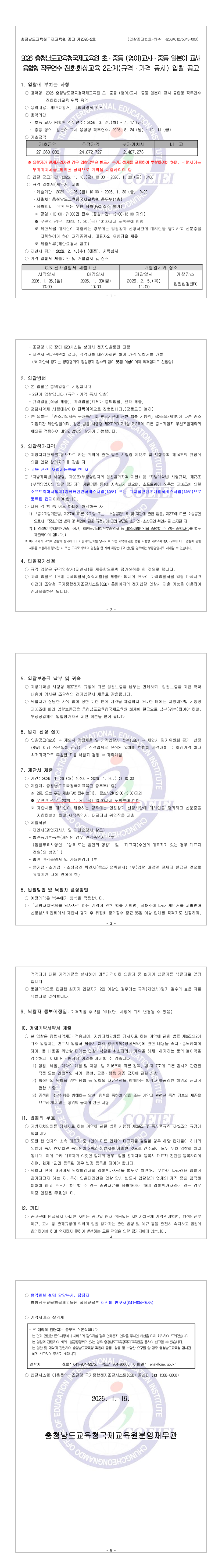 2026학년도 충청남도교육청국제교육원 초.중등(영어)교사.중등 일본어교사 융합형 직무연수 전화화상교육 입찰 용역 |