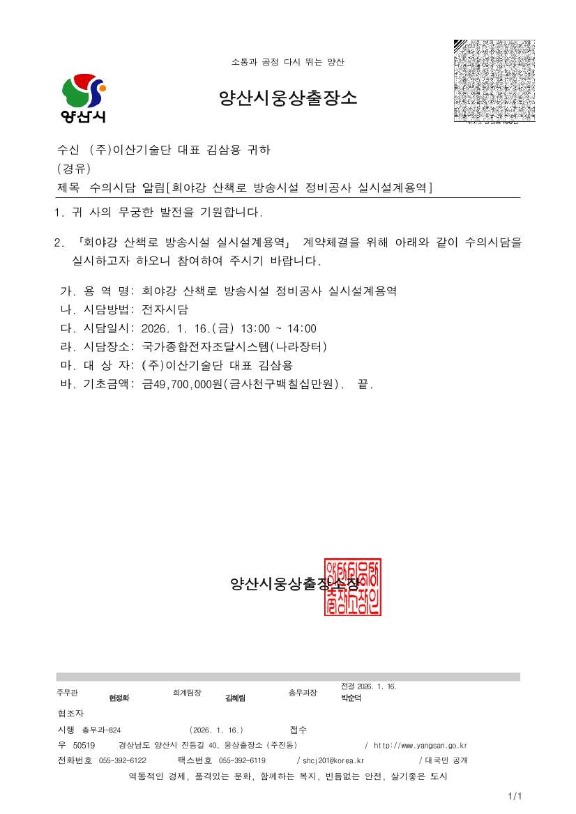 회야강 산책로 방송시설 정비공사 실시설계용역 |