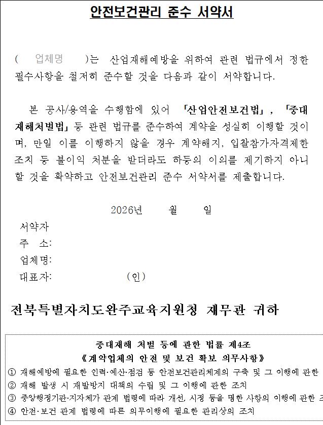 [붙임 4] 안전보건관리 준수 서약서