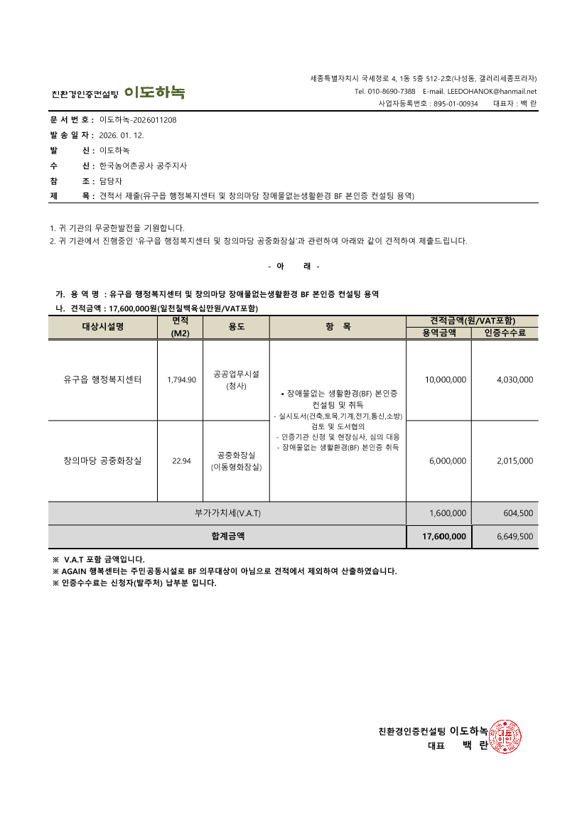 유구읍 농촌중심지활성화사업 BF본인증 컨설팅 용역 |