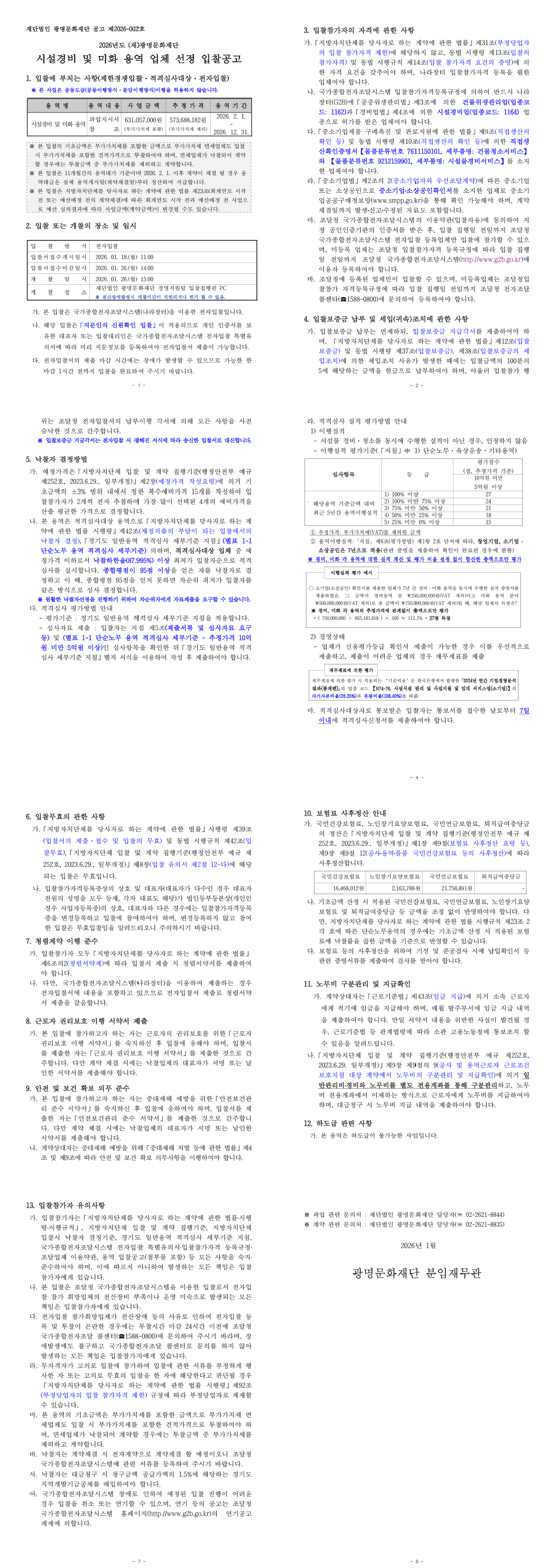2026년 광명문화재단 시설 경비 및 미화용역 |