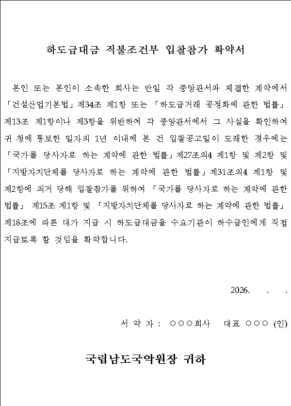 ㅇ 본 입찰의 낙찰자는 계약 체결 시, 국립남도국악원에서 요청한 양식을 작성하여 제출하여야 합니다.