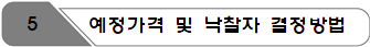 가. 예정가격은 기초금액의 ± 3% 금액의 범위 내에서 서로 다른 15개의 복수예비가격을 작성, 견적서를 제출하는 각 업체가 2개씩 추첨한 결과에 따라 가장 많이 선택된 4개의 복수예비가격을 산술평균한 금액으로 결정됩니다.
