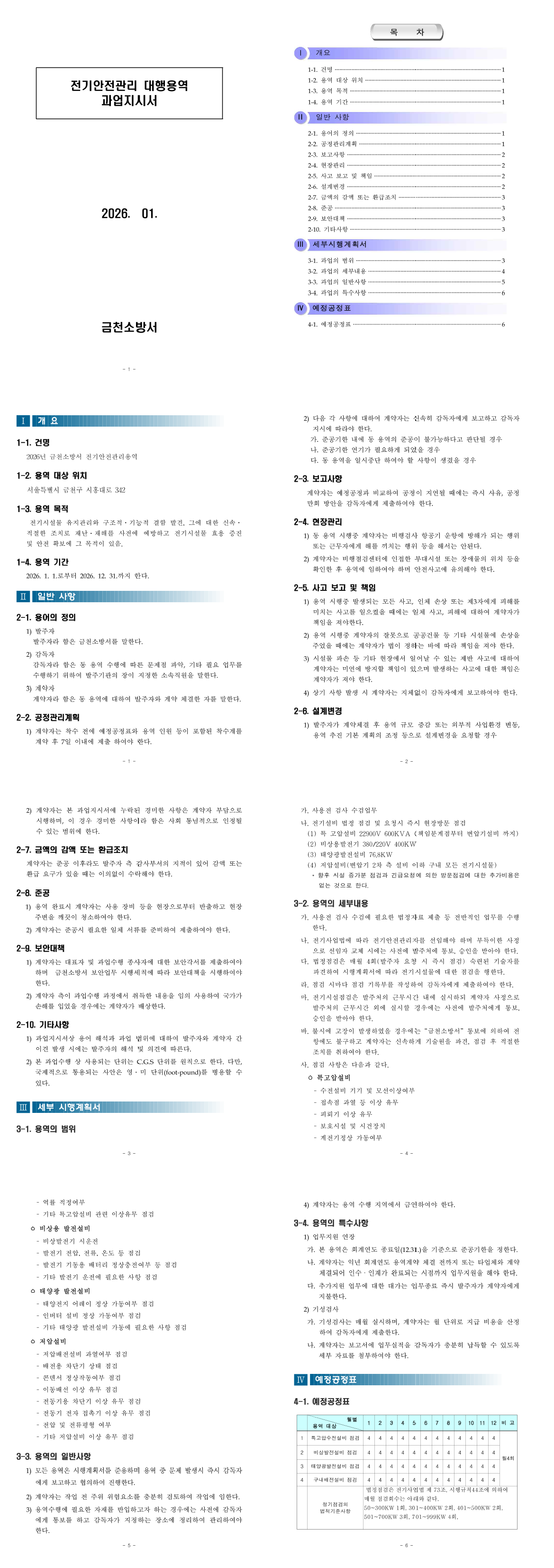 2026년 금천소방서 전기안전관리 대행 용역 |