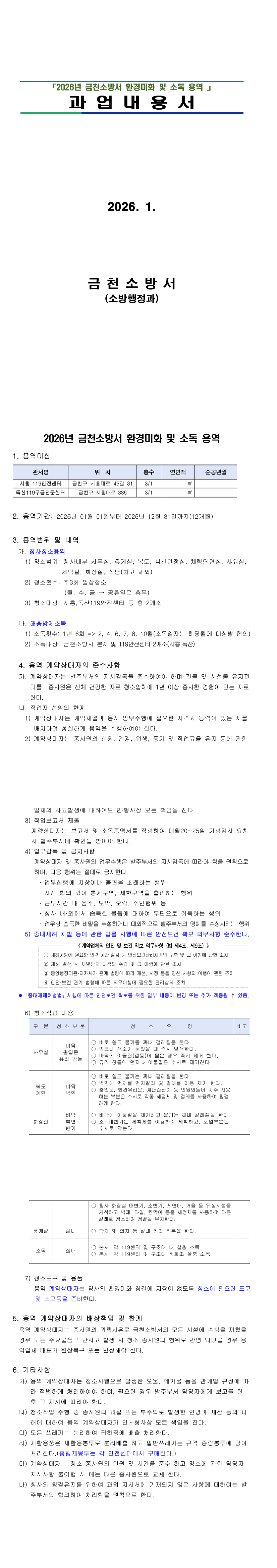 2026년 금천소방서 안전센터 청소 용역 |