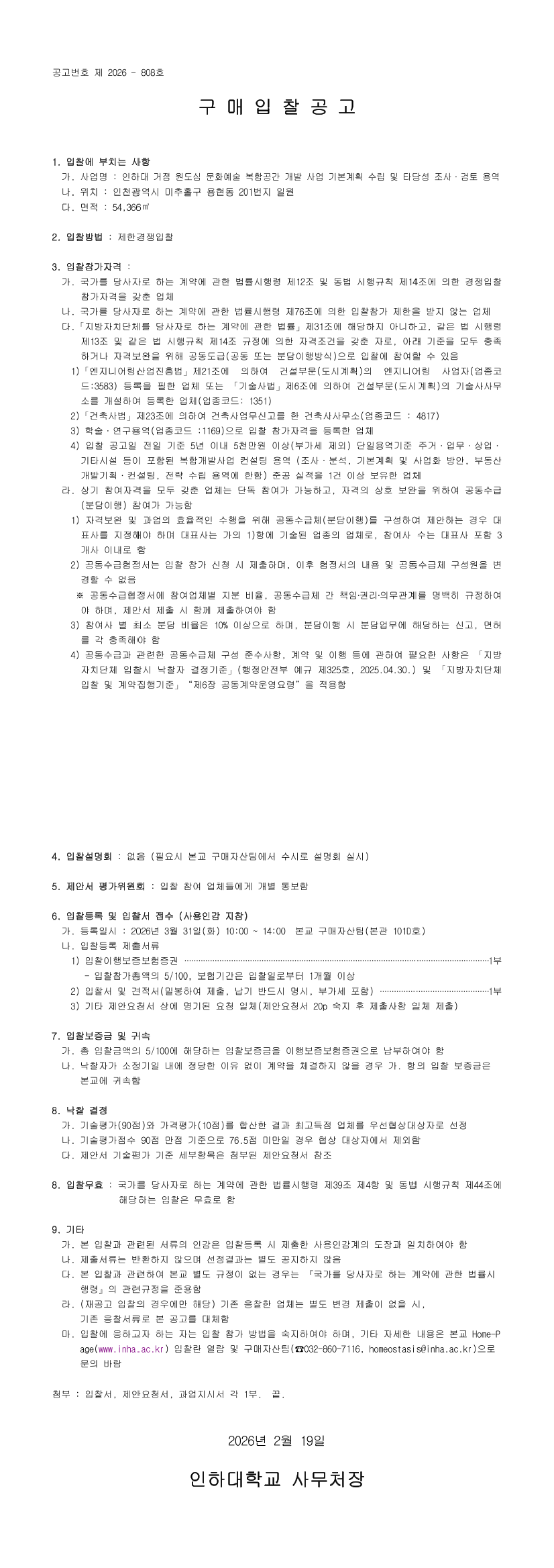 인하대 거점 원도심 문화예술 복합공간 개발 사업 기본계획 수립 및 타당성 조사·검토 용역 |