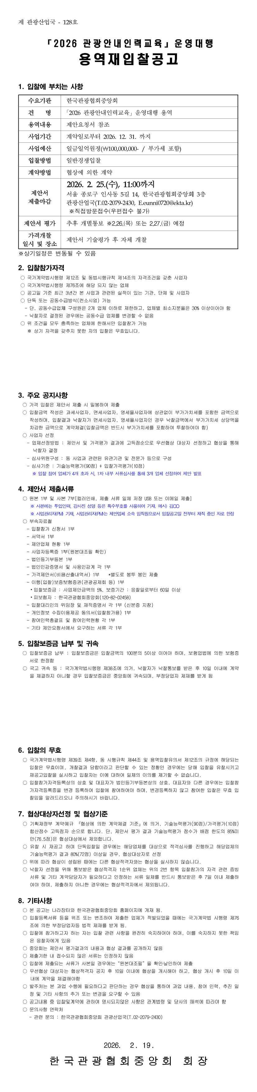 2026 관광안내인력교육 사업 운영 대행 용역 |