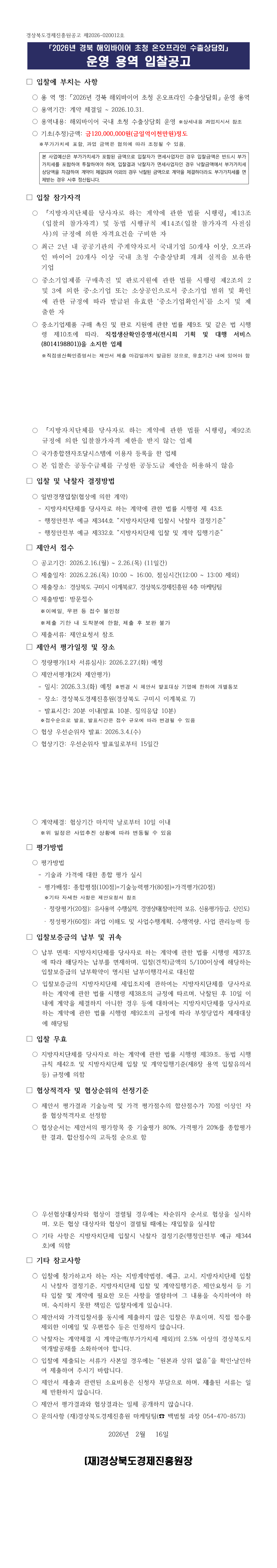 2026년 경북 해외바이어 초청 온오프라인 수출상담회 운영 용역 |