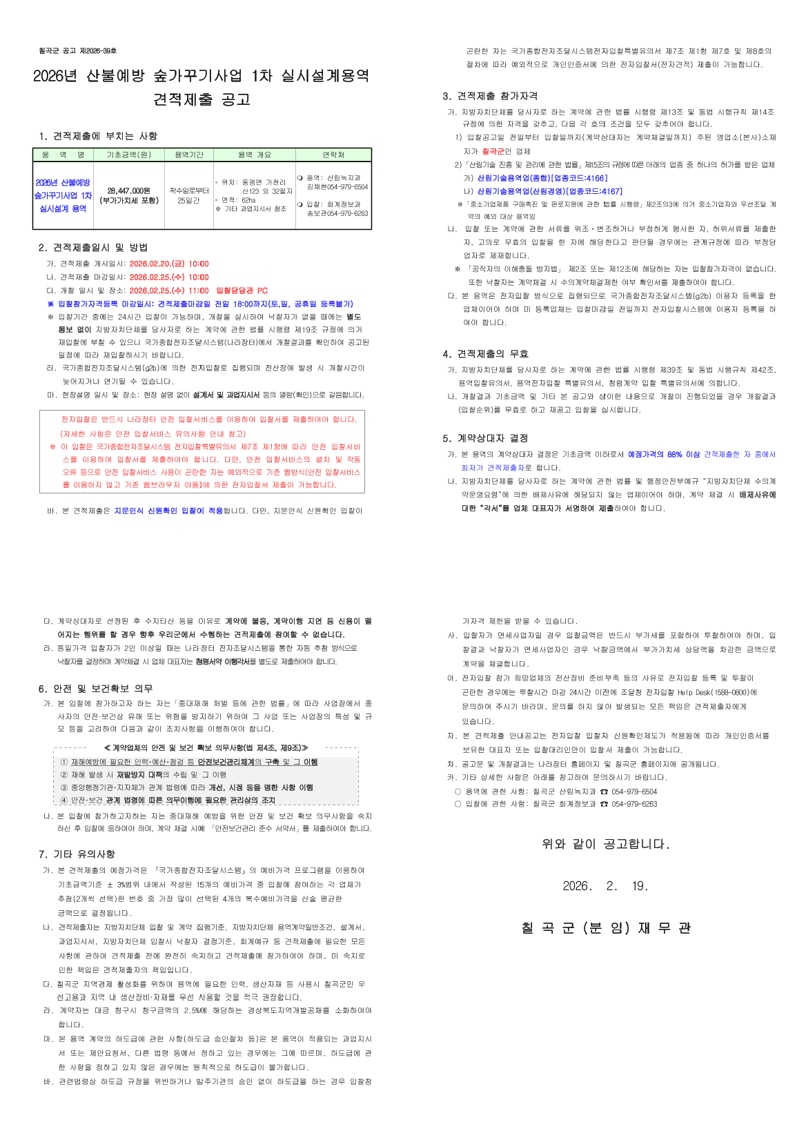 2026년 산불예방 숲가꾸기사업 1차 실시설계 용역 |