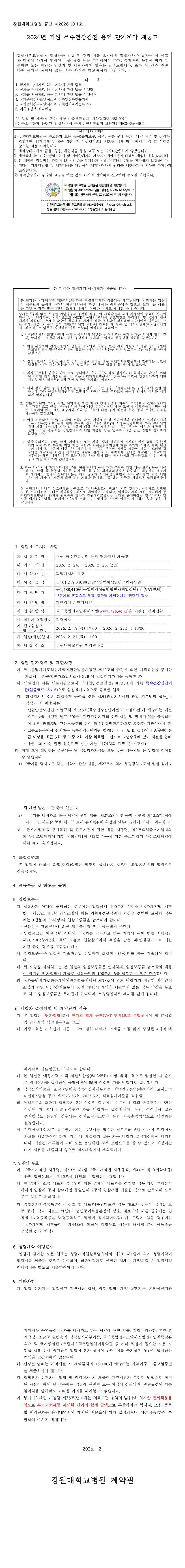 2026년 특수건강검진 용역 단가계약 재공고 |