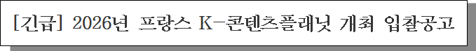 ㅇ 입찰건명 : [긴급] 2026년 프랑스 K-콘텐츠플래닛 개최 위탁용역