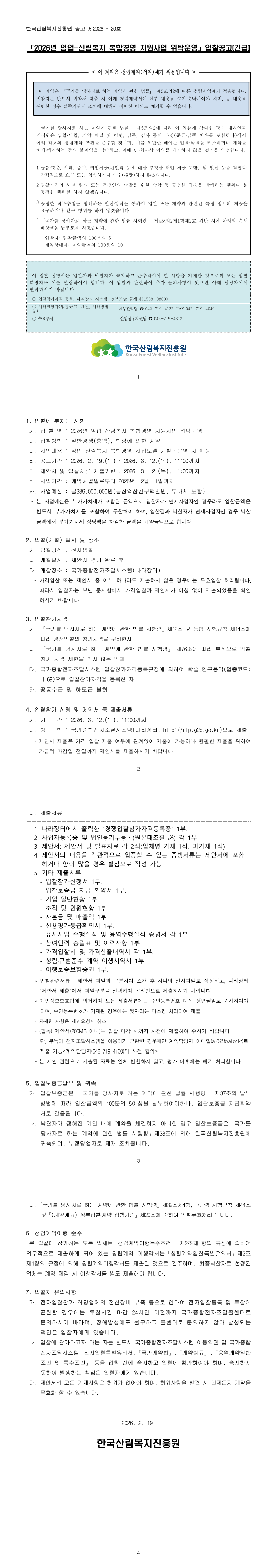 2026년 임업-산림복지 복합경영 지원사업 위탁운영 |