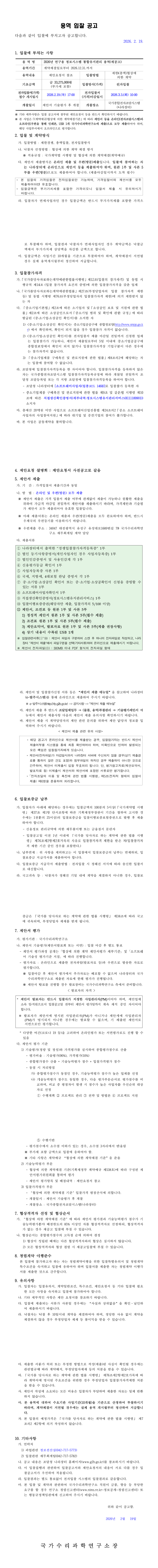 2026년 연구용 정보시스템 통합유지관리 용역(재공고) |