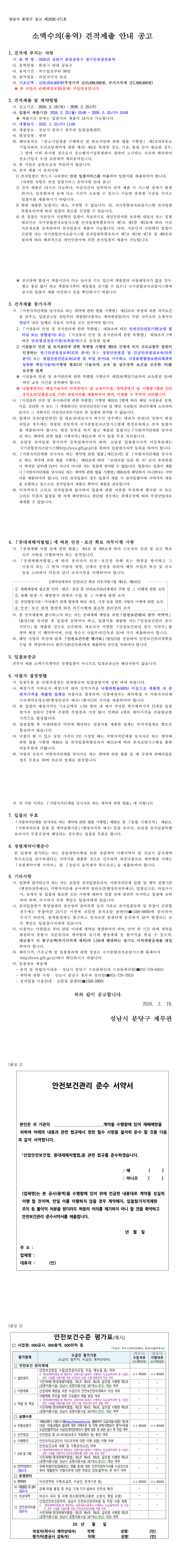 2026년 상반기 분당공동구 정기안전점검용역 |