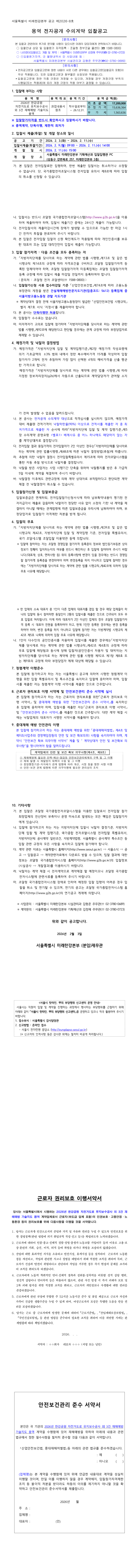 2026년 한강공원 주차장 유지보수공사(연간단가) 건설재해예방 기술지도 용역 |