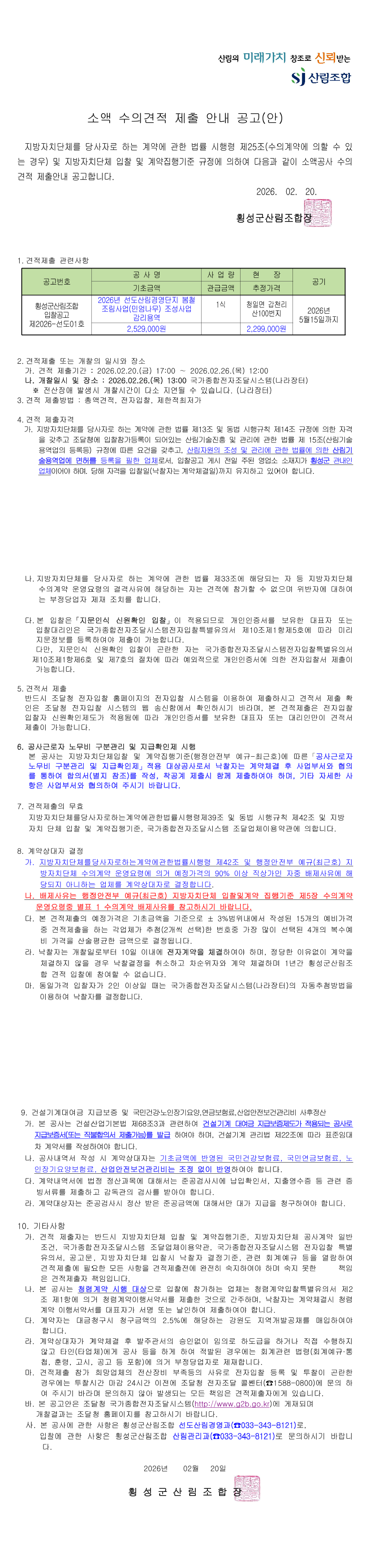 2026년 선도산림경영단지 봄철 조림사업 감리용역 |