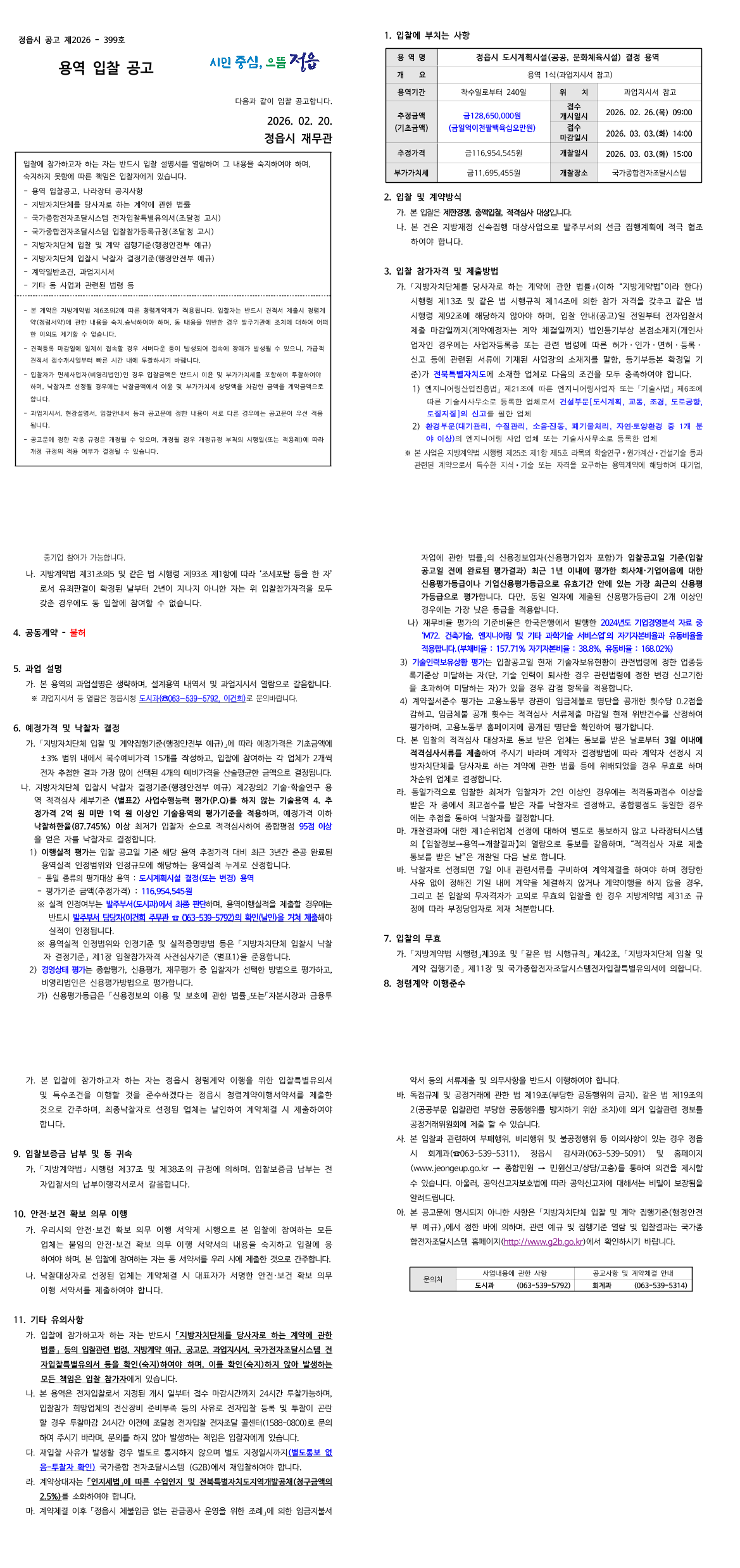 정읍시 도시계획시설(공공, 문화체육시설) 결정 용역 |