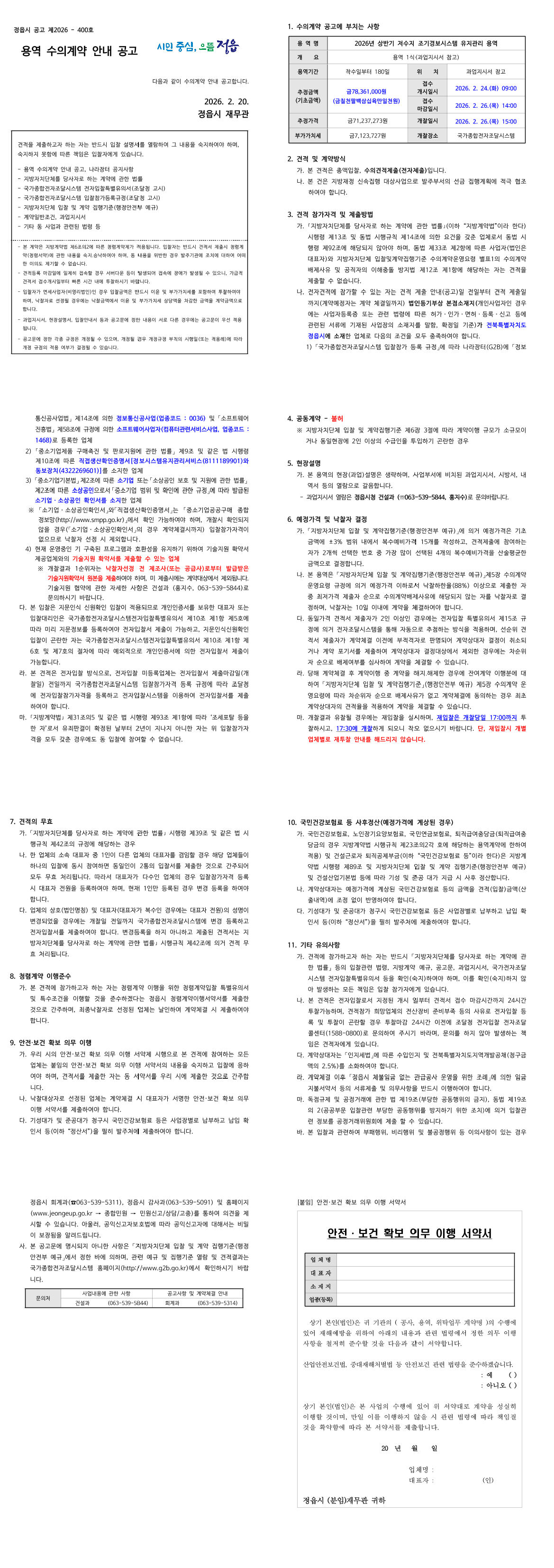 2026년 상반기 저수지 조기경보시스템 유지관리 용역 |
