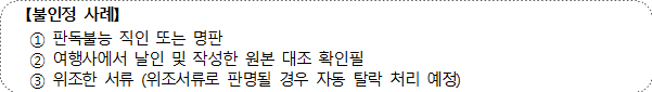 2) 실적발급기관이 아닌 여행사에서 날인 및 작성한 원본 대조 확인필, 서약서