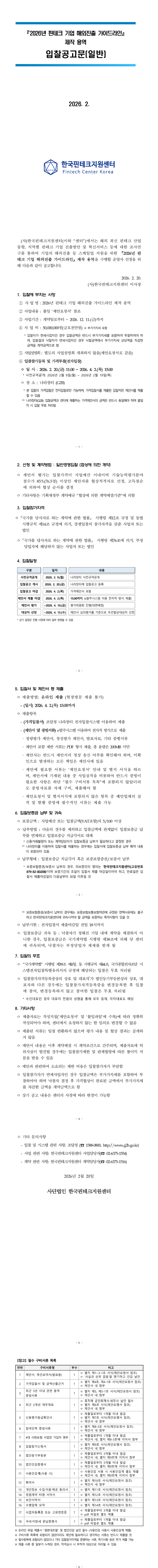 2026년 핀테크 기업 해외진출 가이드라인 제작 용역 |