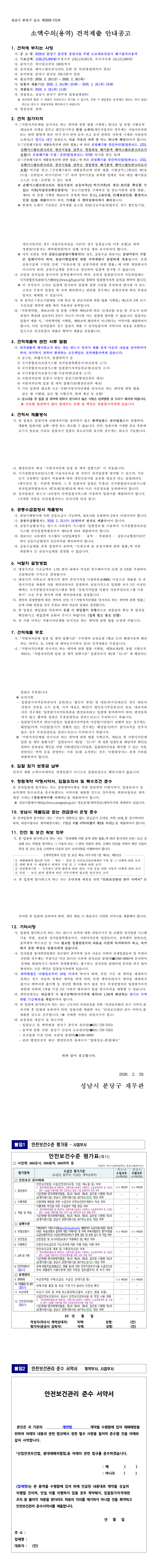 2026년 분당구 분당동 공원마을 주변 도로재포장공사 폐기물처리용역 |