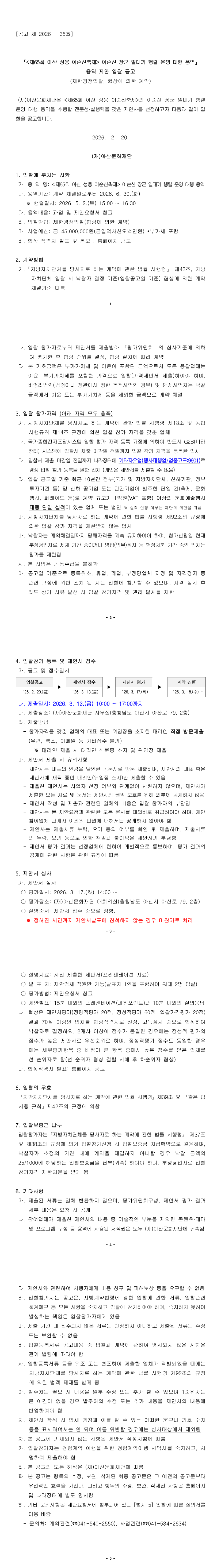 제65회 아산 성웅 이순신축제 이순신 장군 일대기 행렬 운영 대행 용역 공고 |