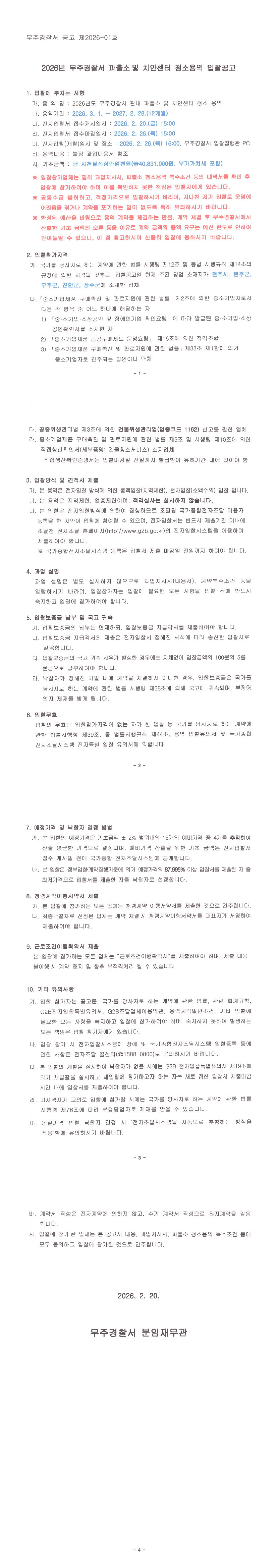 26년도 무주경찰서 중심지역관서(파출소,치안센터) 청소용역 |